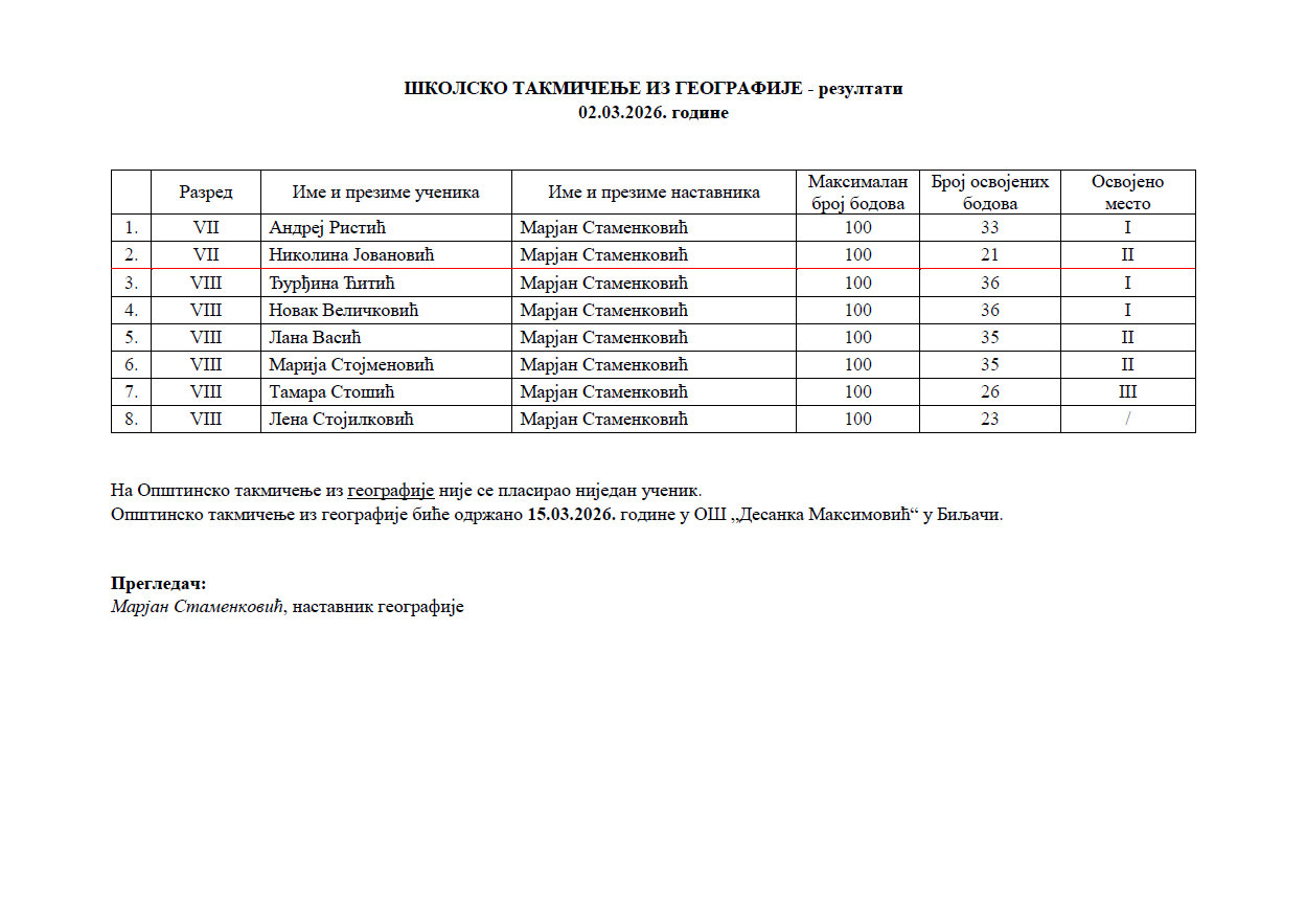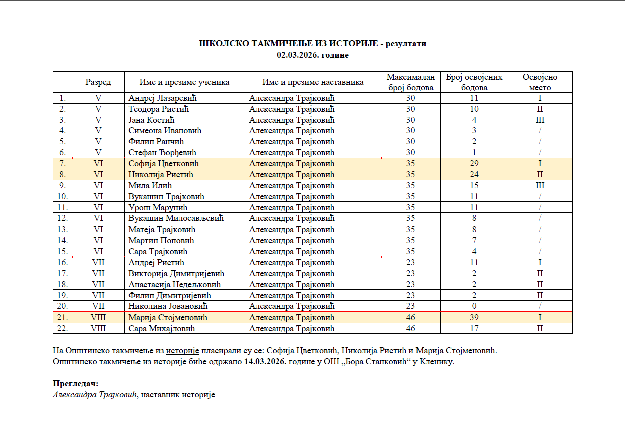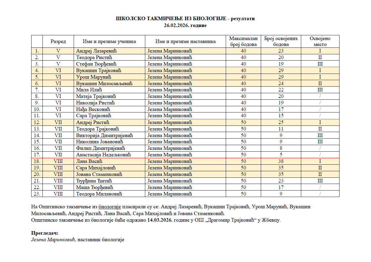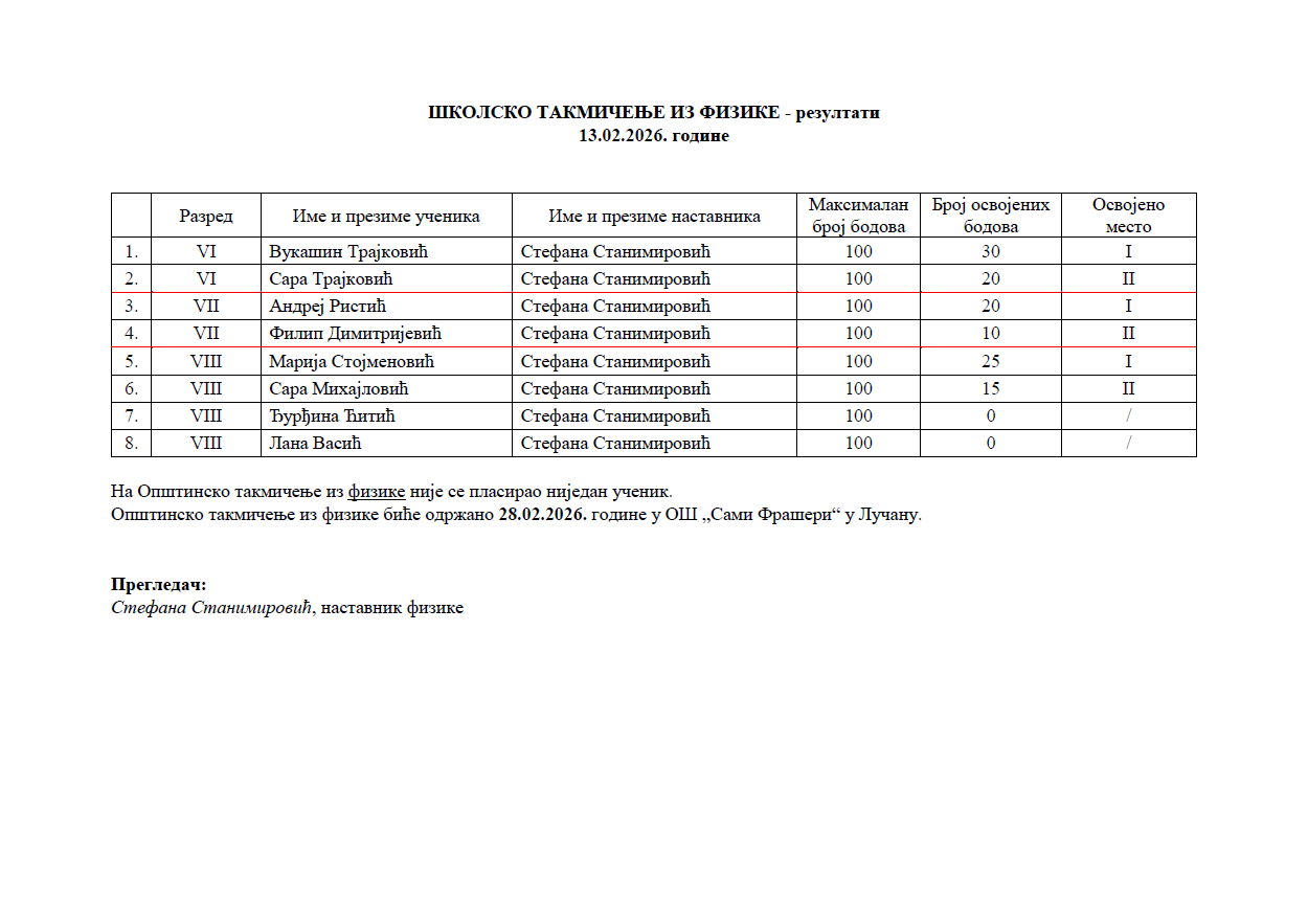 Школска такмичења РЕЗУЛТАТИ 2025/2026